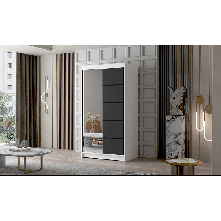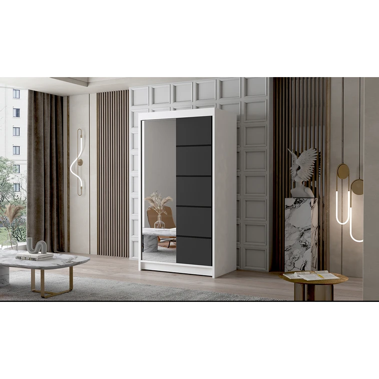 Veľká šatníková skriňa LIVIO III 100 cm Biela - čierna