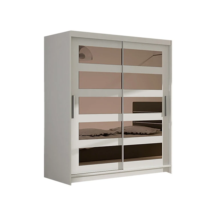 Šatníková skriňa Miami IV je vyrobená v modernom dizajne a ponúka praktický úložný priestor (viď obrázok). Neoceniteľný je systém trendových posuvných dverí (hliníkový pojazd), ktorý uľahčuje manipuláciu. Teleso skrine a dvere sú vyrobené z kvalitného laminátu (16 mm) so vsadeným zrkadlom. Výhodou šatníkovej skrine Miami je malý rozmer, ktorý sa zmestí aj do menšieho interiéru. Údržba je jednoduchá, povrch je ľahko umývateľný, odolný voči pôsobeniu vody a zvýšenej teploty. Skriňa je dodávaná v rozmontovanom stave a v rôznom farebnom prevedení. V prípade otázok nás neváhajte kontaktovať.