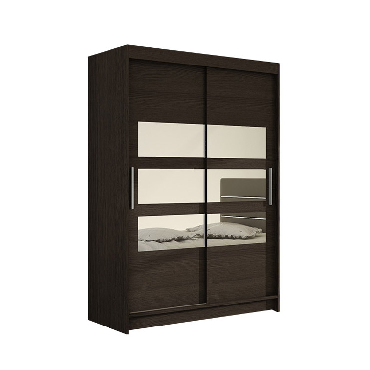 Šatníková skriňa MIAMI V s posuvnými dverami je vo veľmi elegantnom a praktickom prevedení. Na dverách skrine sú zrkadlá. Vnútorná časť je rozdelená na dve polovice. V jednej časti sú poličky, v druhej časti je vešiaková tyč. Skriňa má hliníkové ložiskové pojazdy Micra Sevroll, korpus aj dvierka sú vyrobené z kvalitnej drevotriesky (16mm). Dodávame v rozloženom stave. (v demonte)