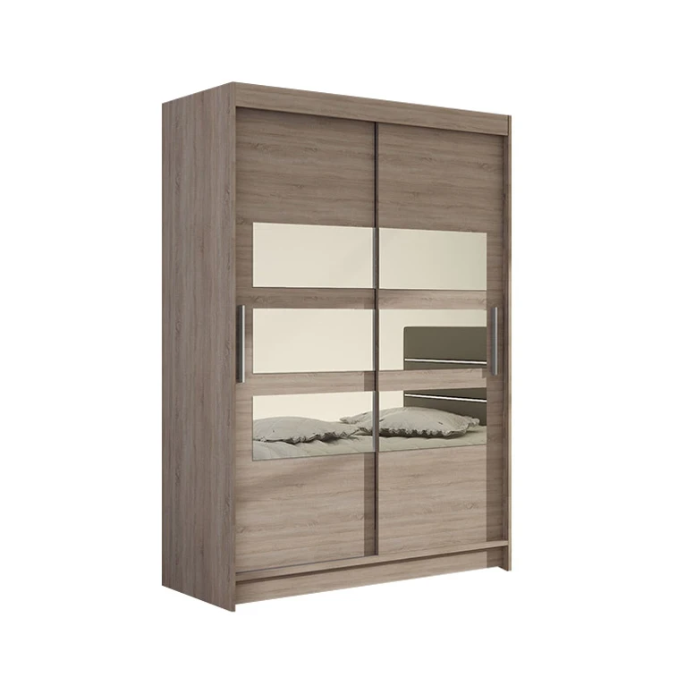 Šatníková skriňa MIAMI V s posuvnými dverami je vo veľmi elegantnom a praktickom prevedení. Na dverách skrine sú zrkadlá. Vnútorná časť je rozdelená na dve polovice. V jednej časti sú poličky, v druhej časti je vešiaková tyč. Skriňa má hliníkové ložiskové pojazdy Micra Sevroll, korpus aj dvierka sú vyrobené z kvalitnej drevotriesky (16mm). Dodávame v rozloženom stave. (v demonte)