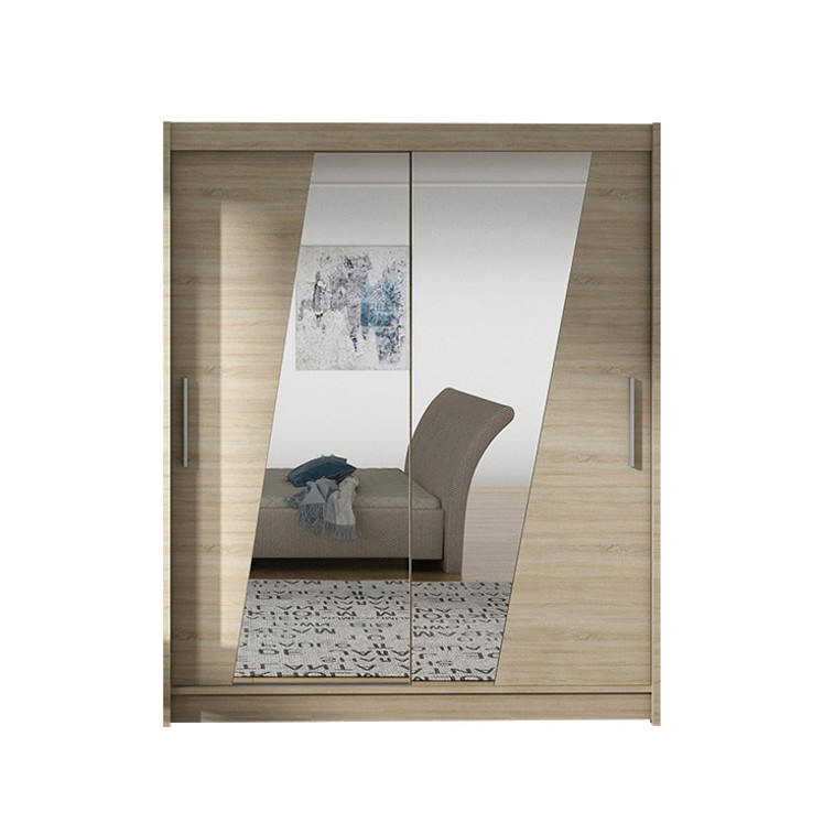 Šatníková skriňa WESTA XIV s posuvnými dverami je vo veľmi elegantnom a praktickom prevedení. Na dverách skrine sú zrkadlá. Vnútorná časť je vybavená policami, na pravej strane je umiestnená vešiaková tyč. Usporiadanie políc viď obrázok. Skriňa má hliníkové ložiskové pojazdy Micra Sevroll, korpus aj dvierka sú vyrobené z kvalitného lamina (16 mm). Dodávame v demontovanom stave.