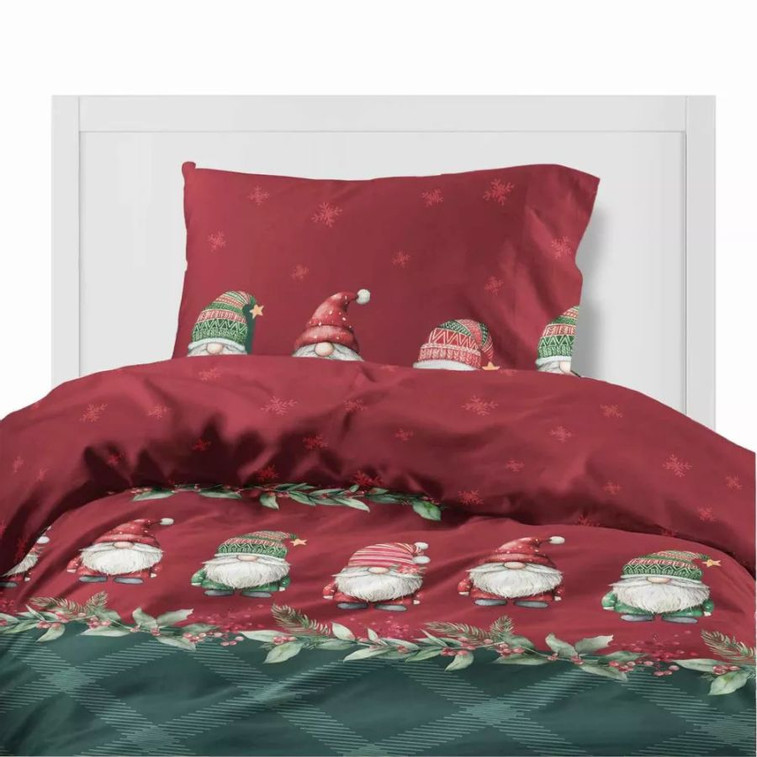 Teplo a kúzlo sviatkov pocítite s unikátnymi flanelovými obliečkami z kolekcie Kúzlo Vianoc. Očarujúce vzor škriatkov na vínovo zelenom pozadí vnesie do vašej spálne útulnú vianočnú atmosféru. Jemný a hebký flanel robí z tejto sady ideálnu sadu na chladné zimné noci. Prírodná tkanina vás zahalí do jemnej hebkosti a zaistí pohodlný spánok a relaxáciu.