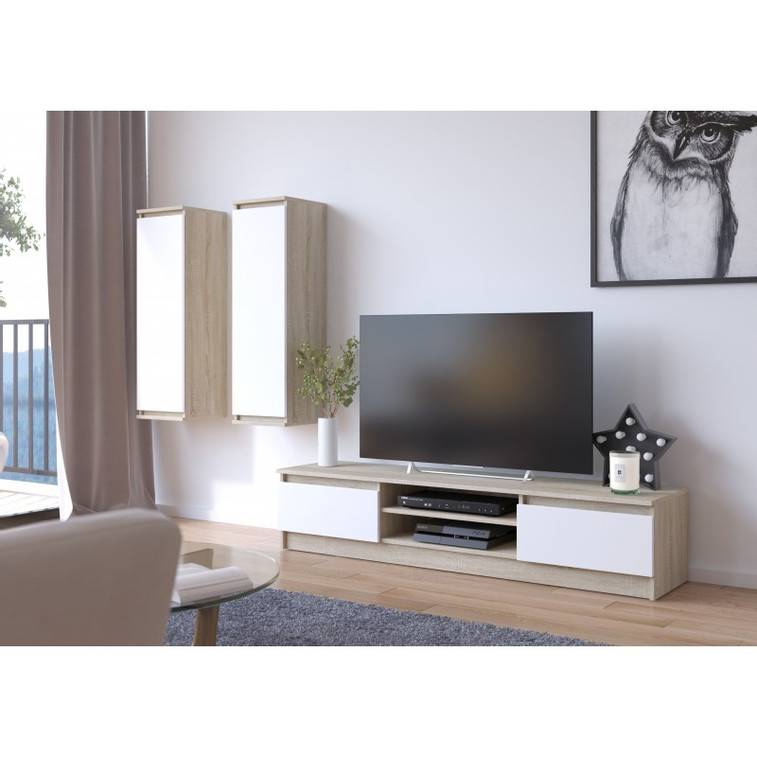 Praktická skrinka na stenu v sebe skrýva priestor rozdelený dvomi priečkami na tri časti. Sklenené poháre, knihy či iné drobnosti si v nej nájdu svoje miesto. Svetlé farebné vyhotovenie a svieži moderný dizajn si obľúbite na prvý pohľad.