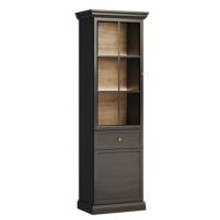 Praktická vitrína s presklenými dverami a LED osvetlením. Vnútri sú dve police na knihy alebo suveníry z ciest, ktoré budú vďaka osvetleniu skvele vystavené. Súčasťou vitríny je aj zásuvka na drobnosti a priestranná skrinka. Čiernohnedý alebo biely dekor s hlbokými prírodnými pórmi dreva má rôzne stupne lesku a pôsobí mimoriadne dynamicky a veľmi rozmanito. Kolekcia Lucca vám umožňuje voľne miešať klasický a moderný štýl.