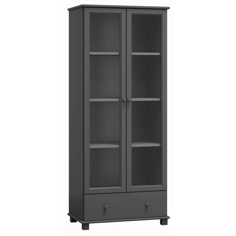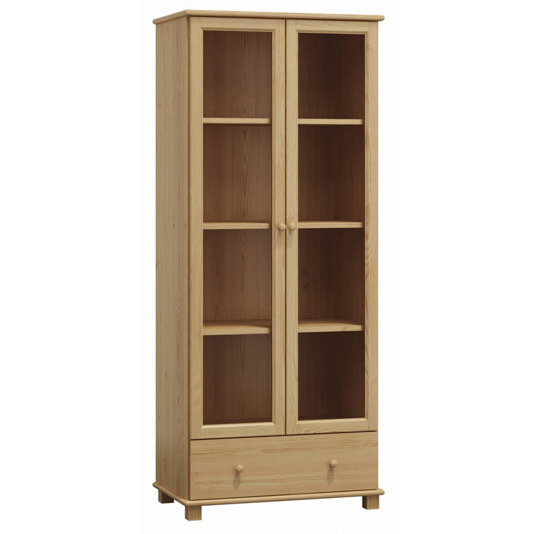 Vitrína RW103 je vyrobená z mimoriadne odolného prírodného borovicového dreva, ktoré zaručuje odolnosť a stabilitu konštrukcie nábytku. Sklenená úprava dvierok umožňuje vystaviť dekoratívne prvky, zdôrazňujúce originálny dizajn. Prírodný materiál dokonale kombinuje eleganciu s funkčnosťou a vytvára tak jedinečný interiér.