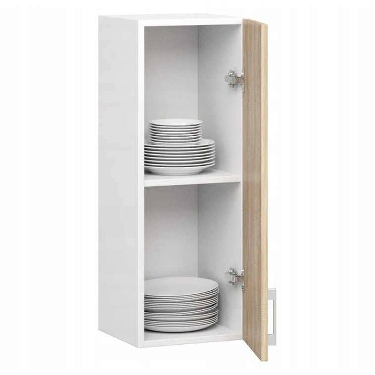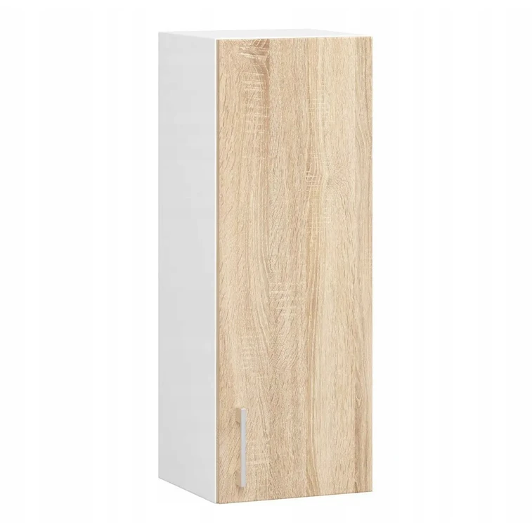 Povrchová úprava čela vo farbe dub sonoma určite osloví ľudí, ktorí ocenia riešenia pohodlné pri každodennom používaní, ľahko sa čistia a sú dizajnovo univerzálne. Kuchynská skrinka je vyrobená z laminovanej dosky, ktorá je vysoko odolná proti oderu. Biely korpus sa skvele kombinuje s prednou stranou vo farbe dub sonoma. Vnútri dvierok sú dve police, ktoré je možné využiť na uloženie riadu alebo potravín. Nábytok je dostupný za priaznivú cenu. Ide o jednoduchú, ale zároveň veľmi elegantnú skrinku.